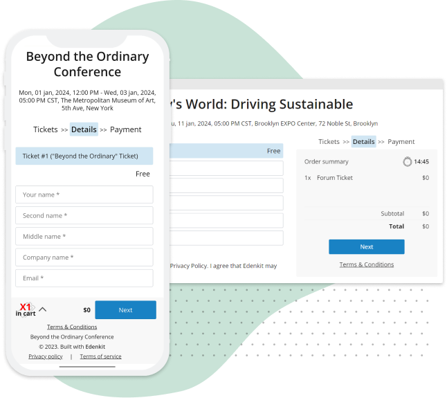 Start selling in just a few clicks. Create your own registration forms and collect the information you need. Increase conversion into attendees.