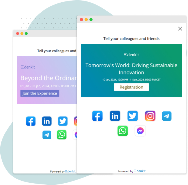 Social media plugins let you create and spread the word about your event. Utilize a community of attendees and speakers to promote your event. Turn them into event advocates.